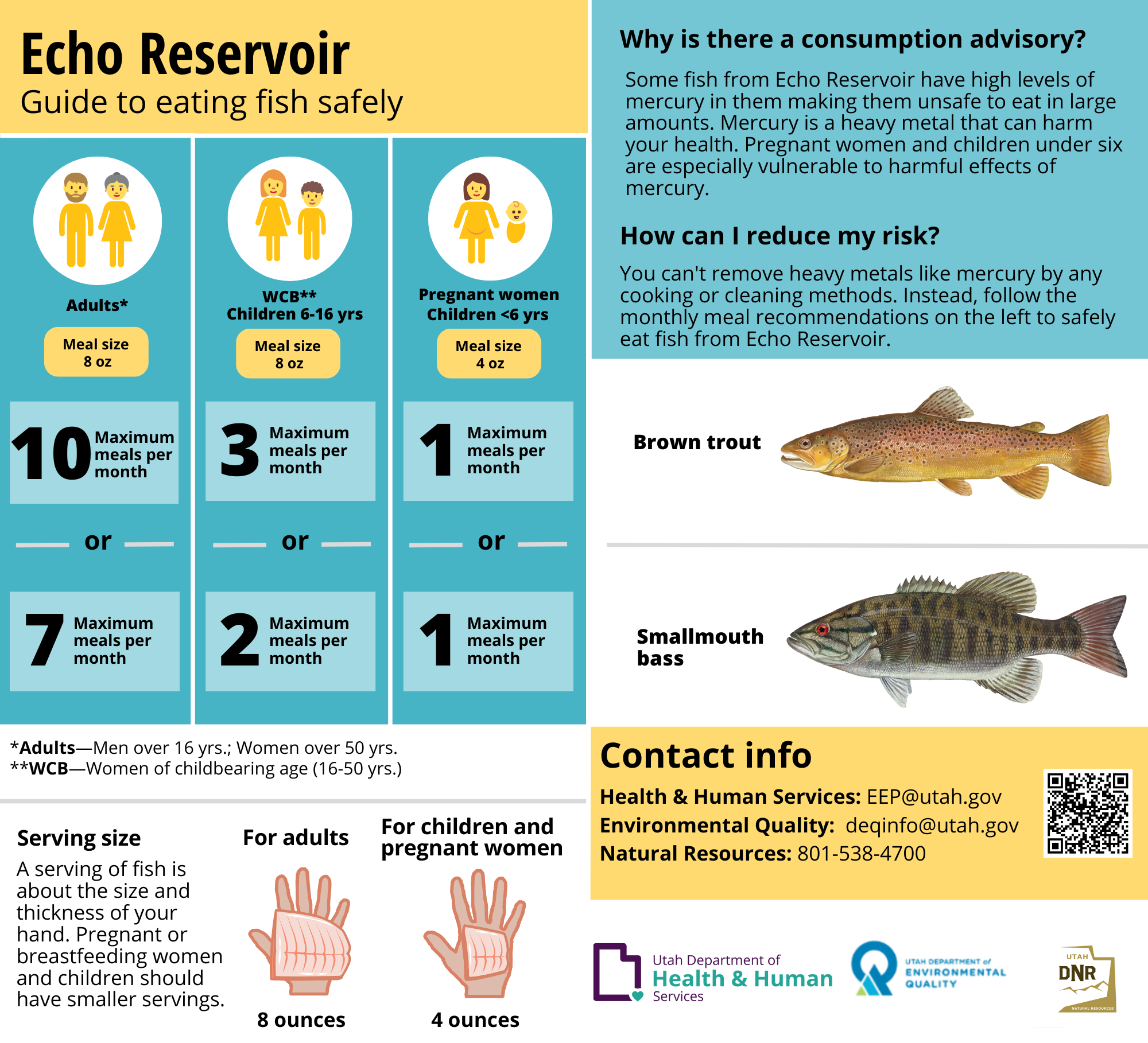 Utah public health officials issue fish consumption advisories when contamination levels are unsafe. The advisories outline recommendations for limiting intake of specific fish at specific locations.